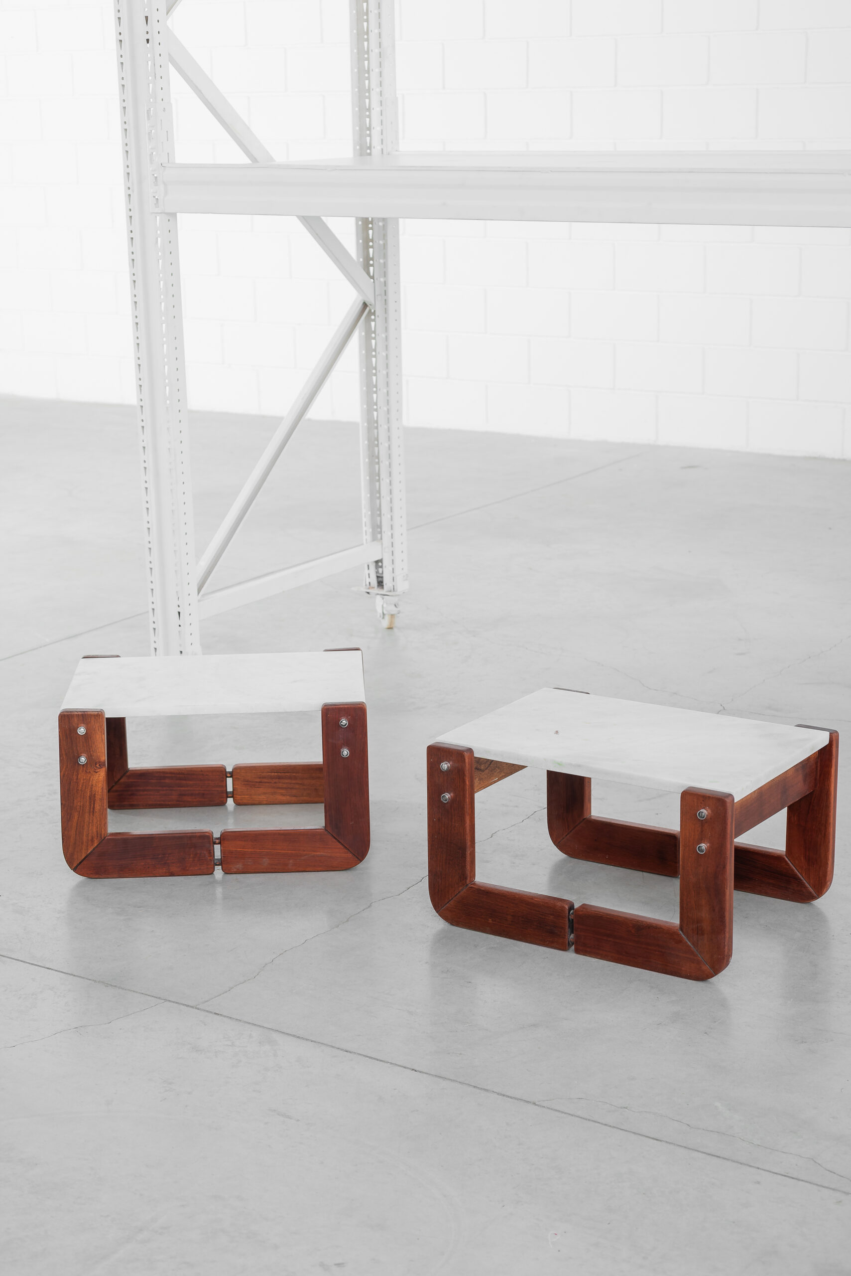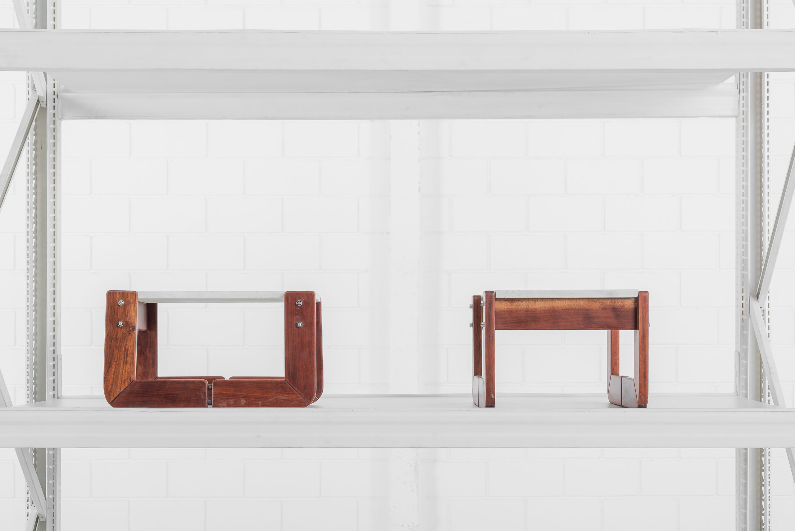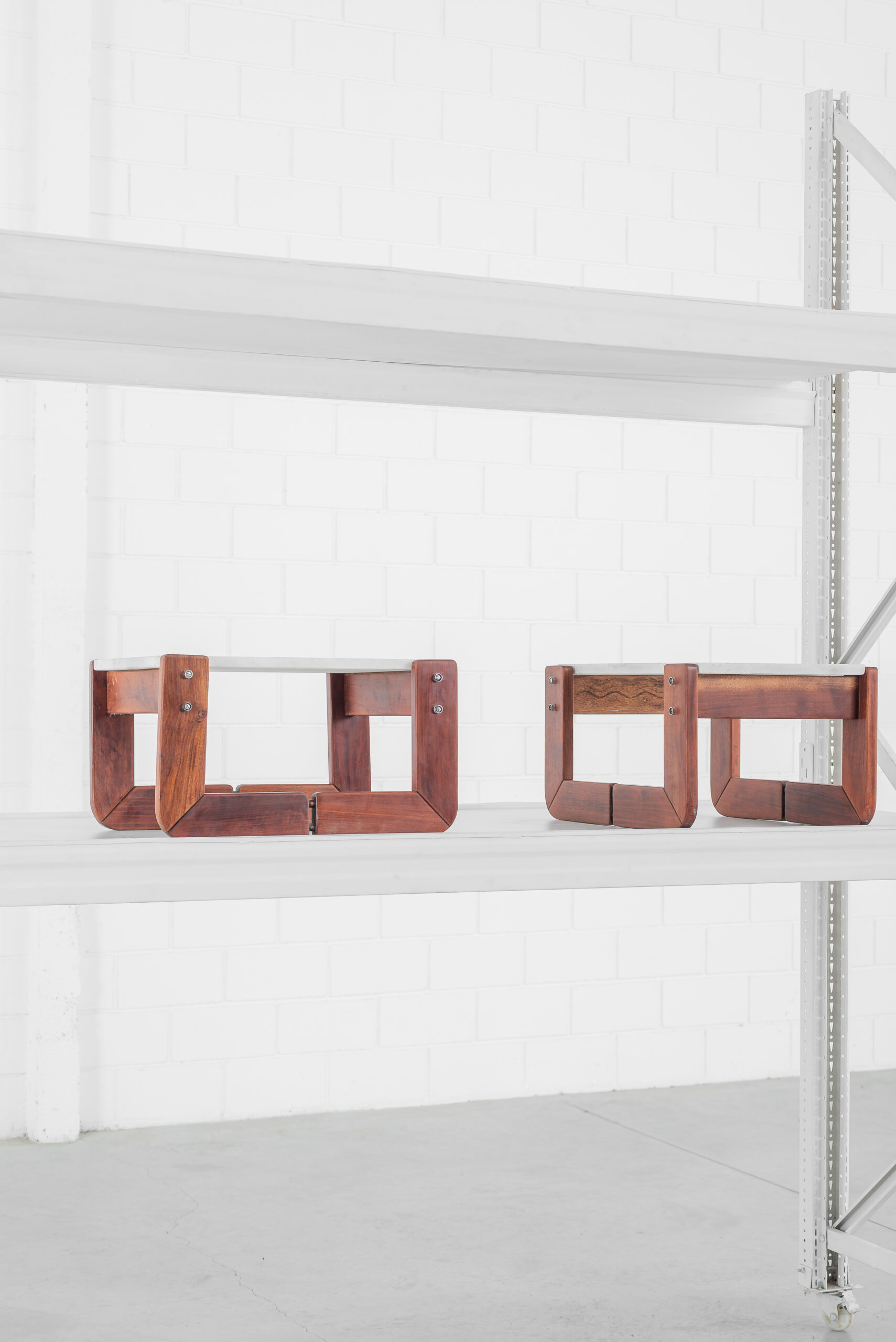 Par de mesas mp-97 modelo exportação, em jatobá maciço com acabamentos em latão.