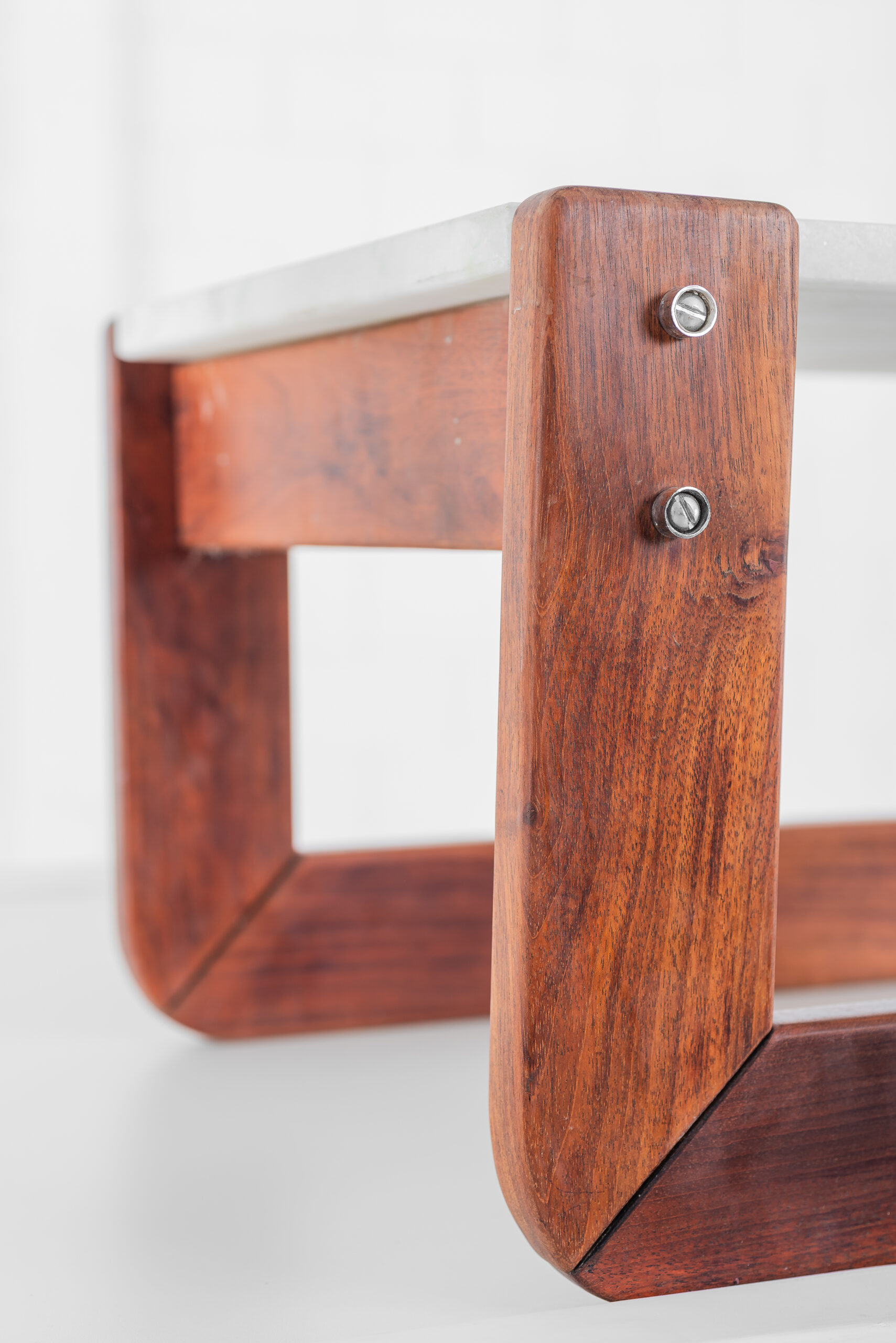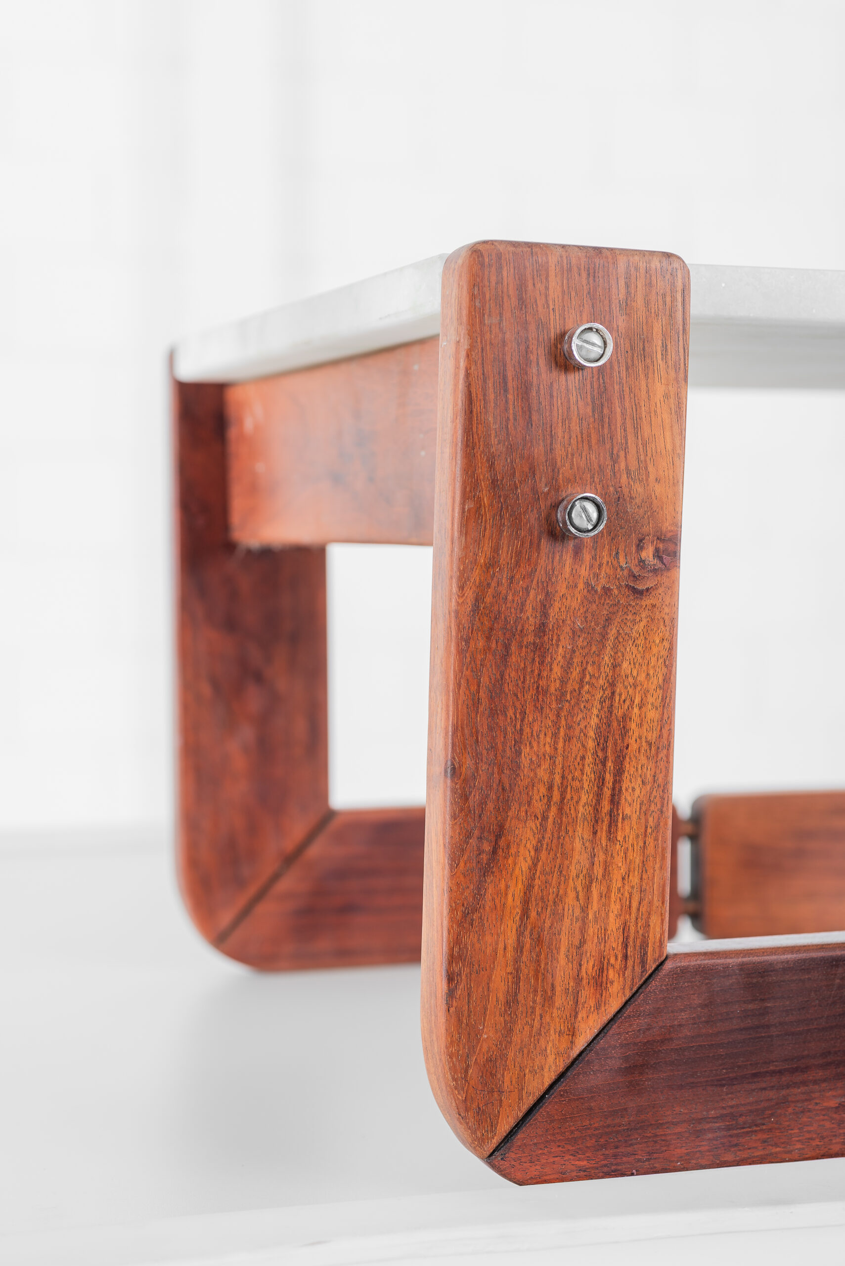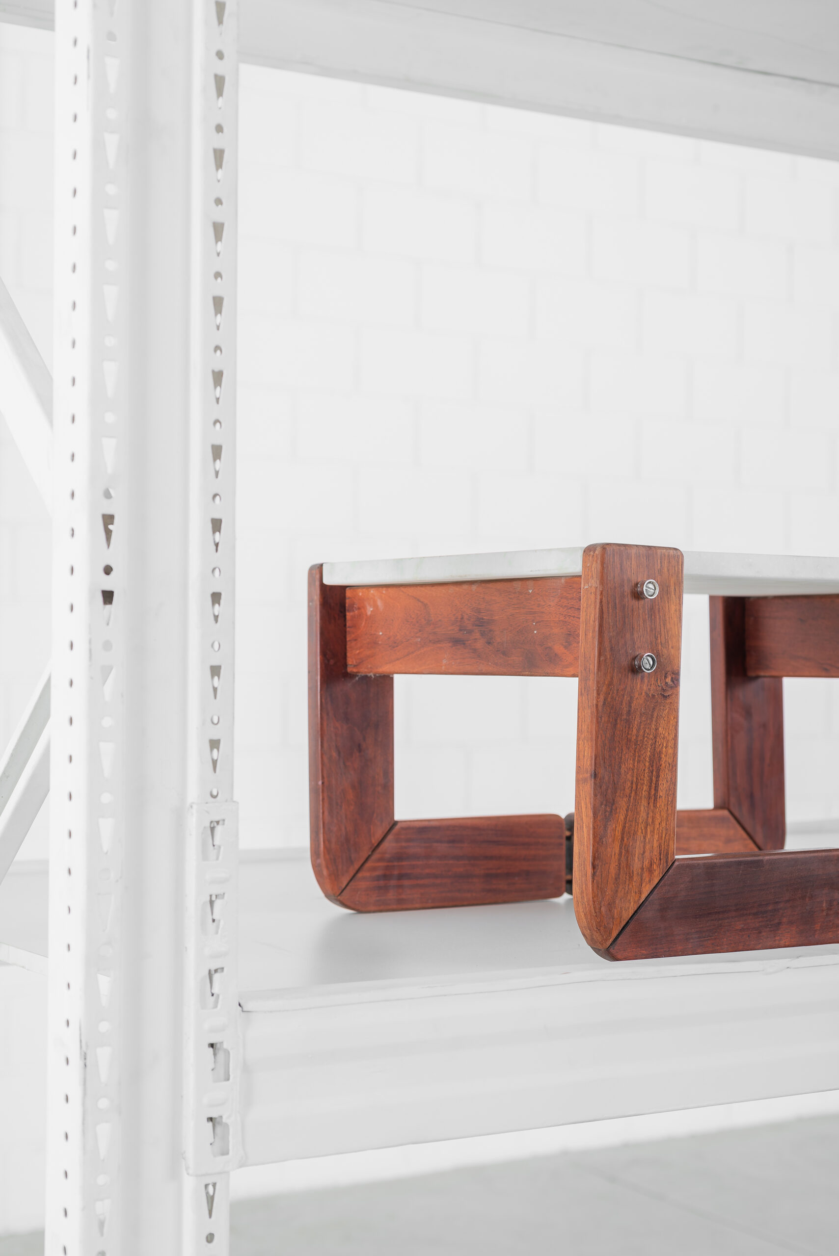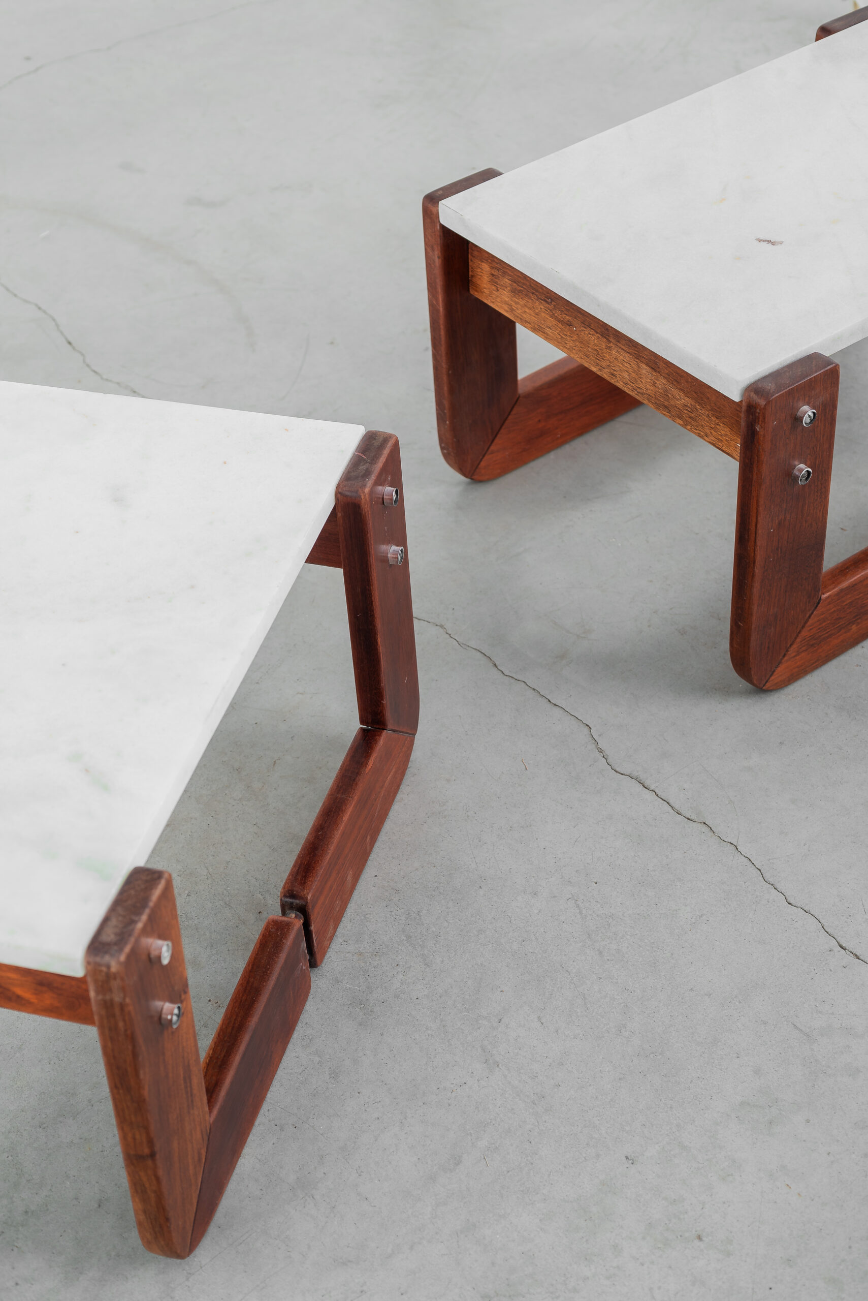 Par de mesas mp-97 modelo exportação, em jatobá maciço com acabamentos em latão.