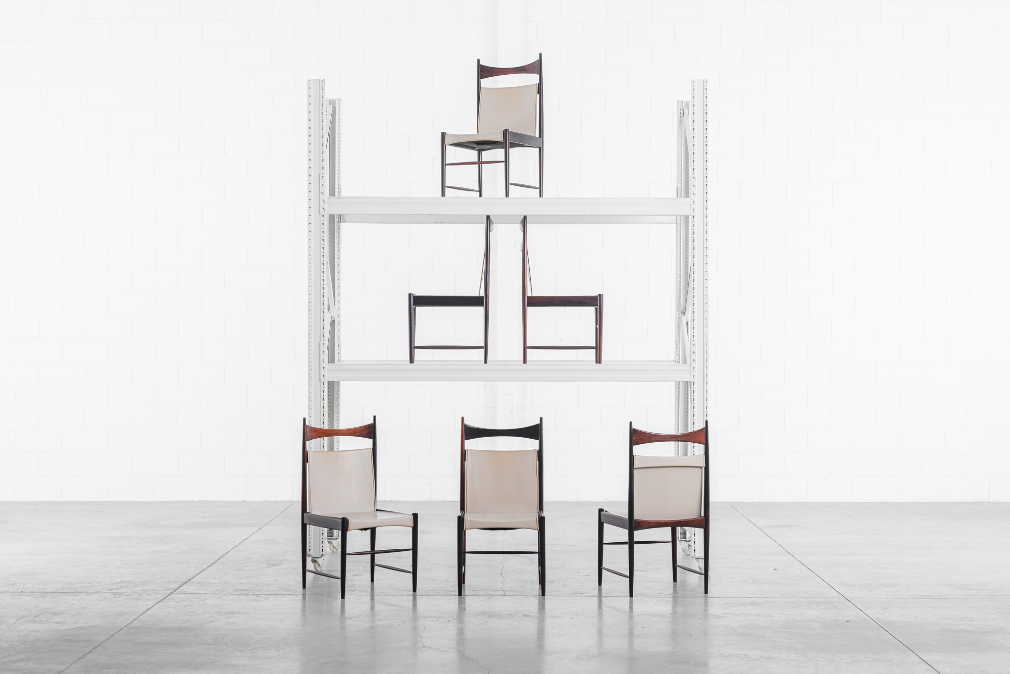 Sergio Rodrigues – Conjunto de 6 cadeiras Cantu alta