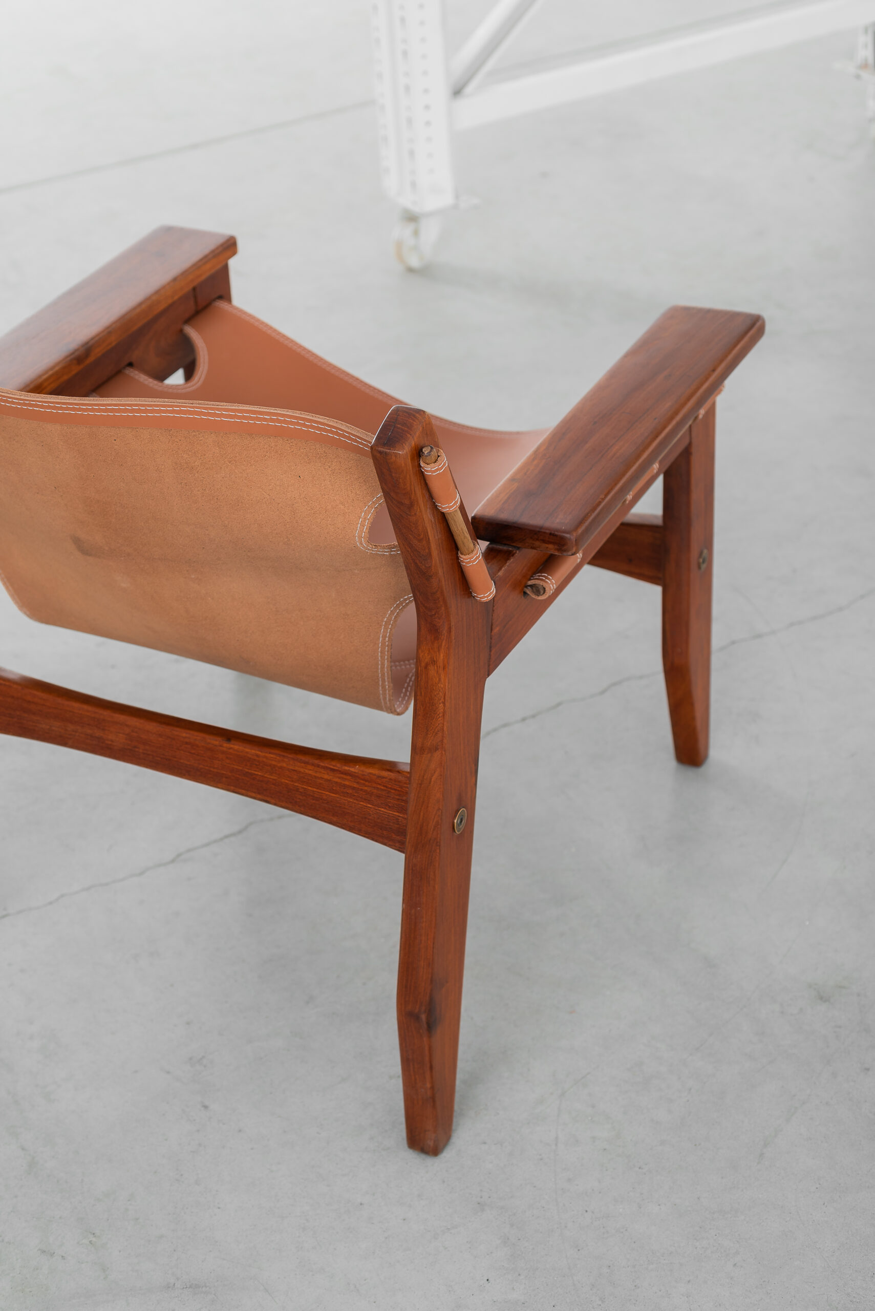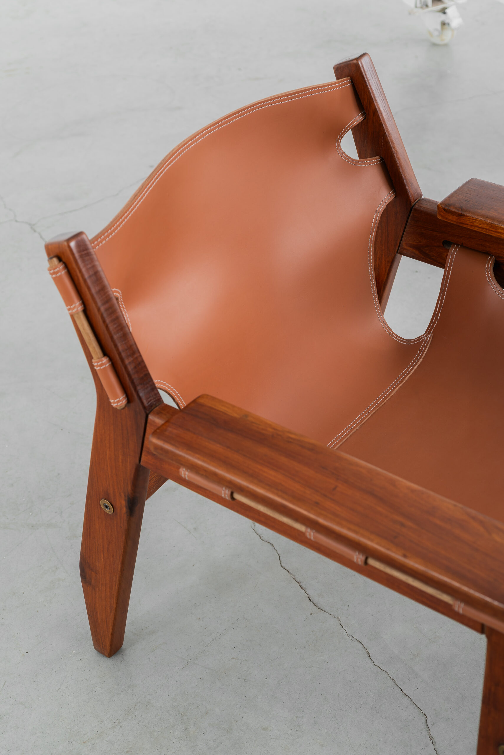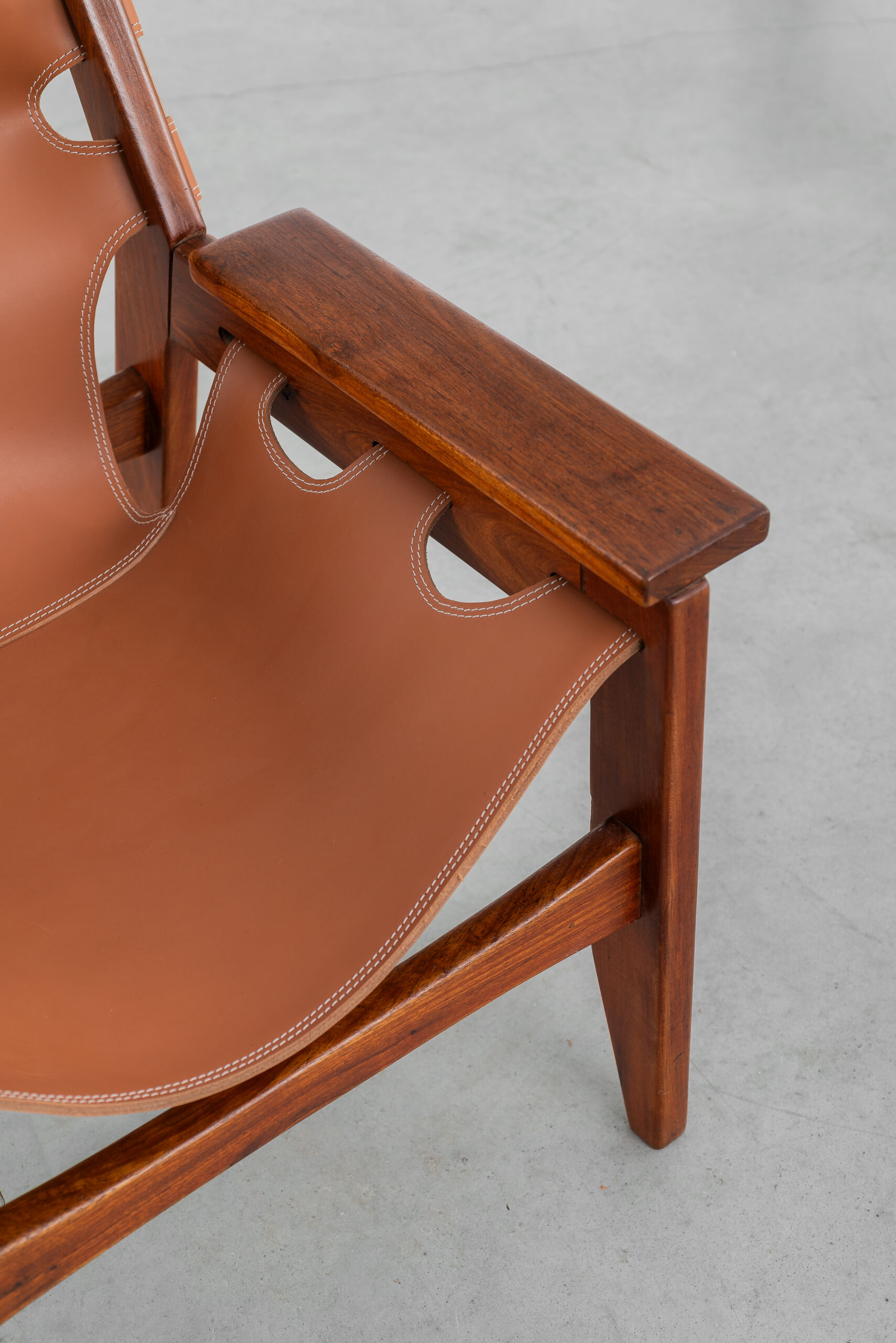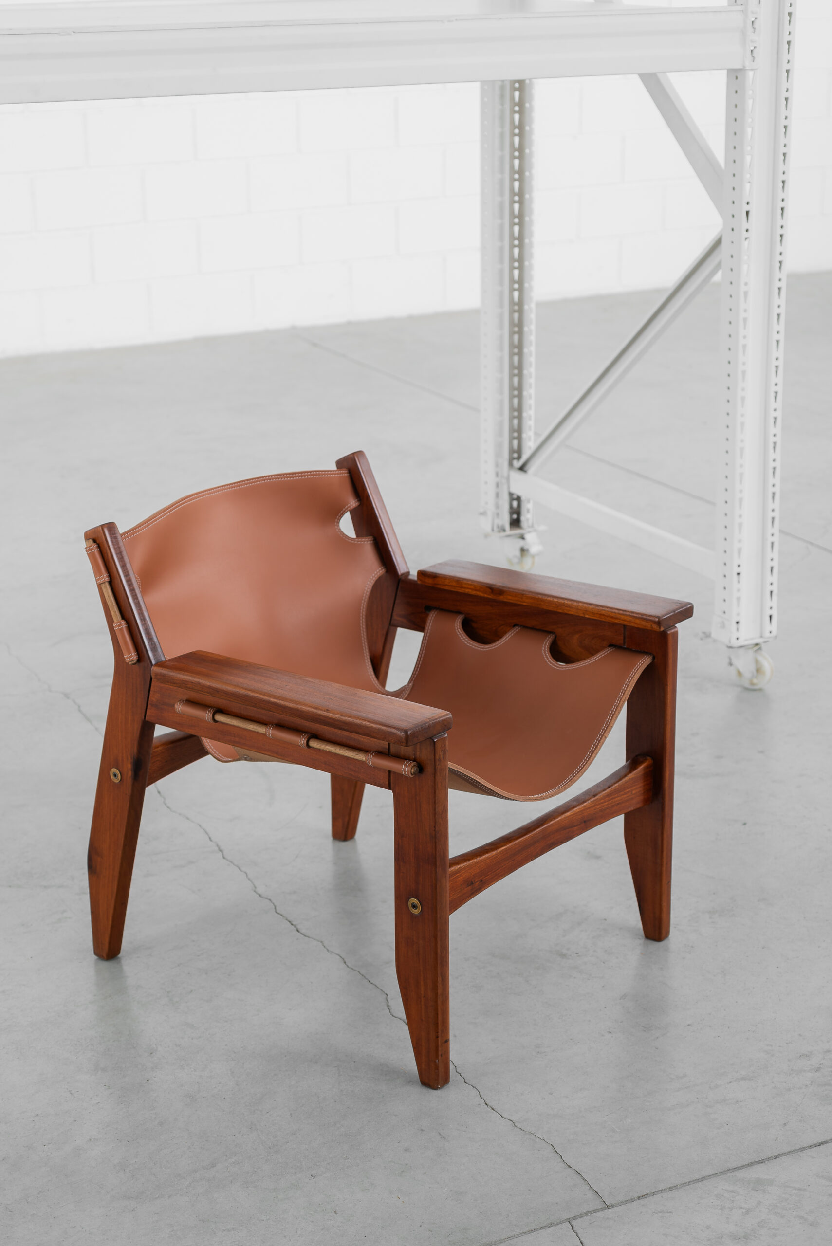 Poltrona Kilin em freijó maciço e couro.
