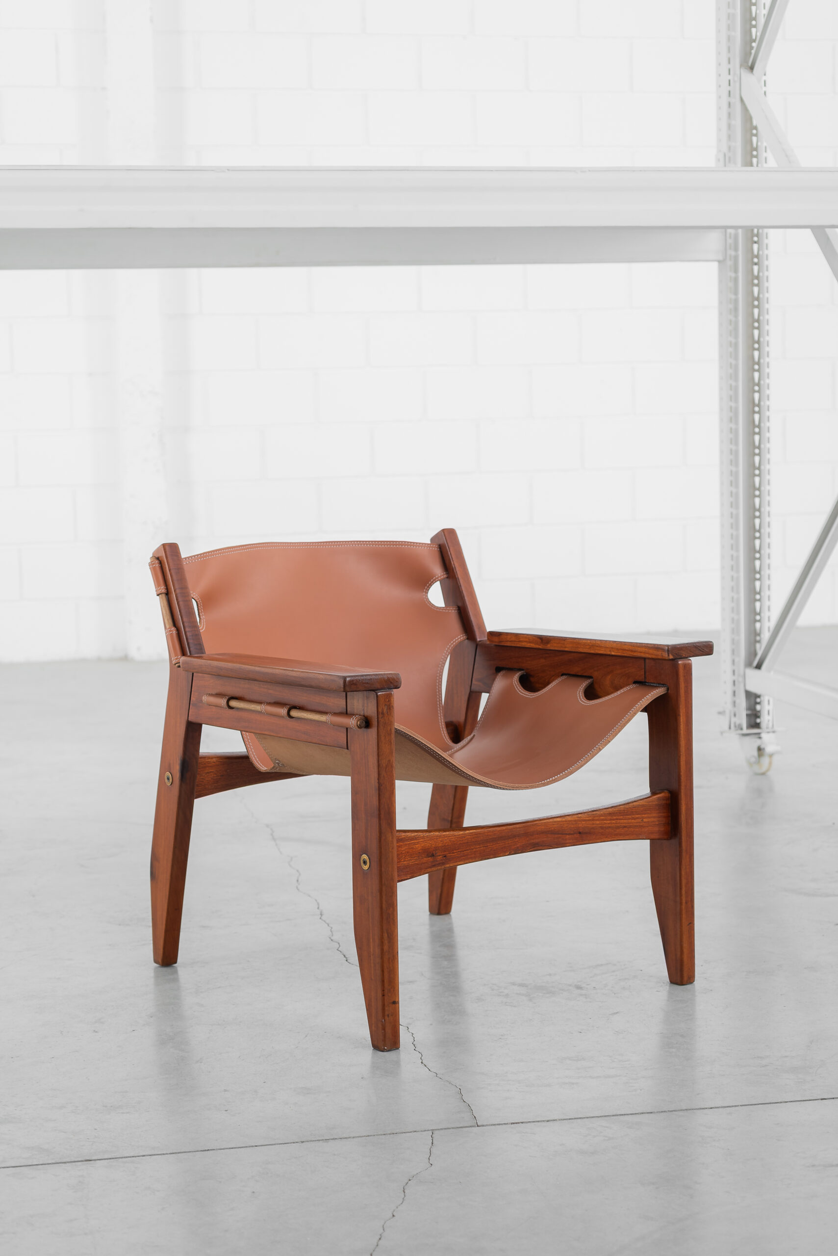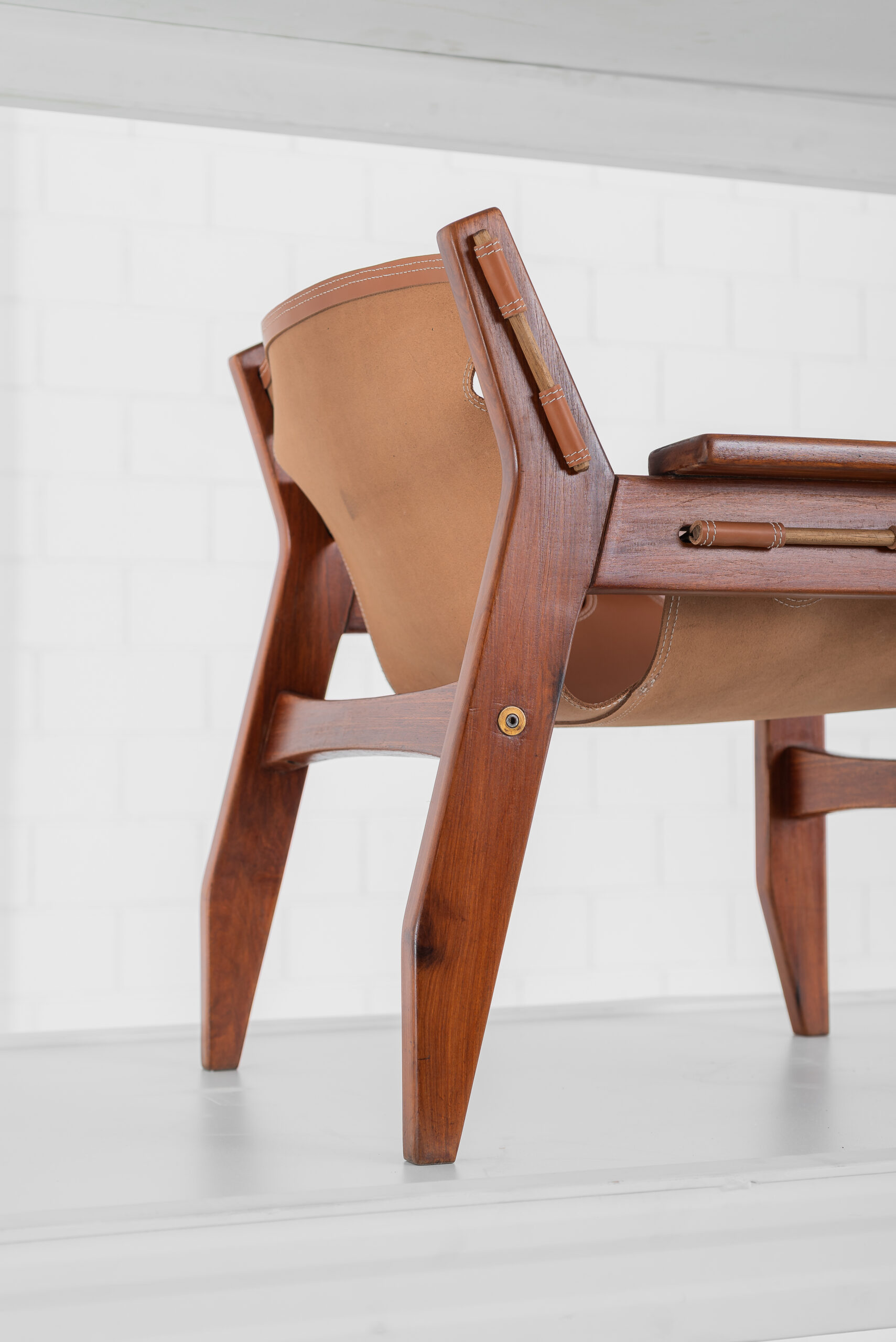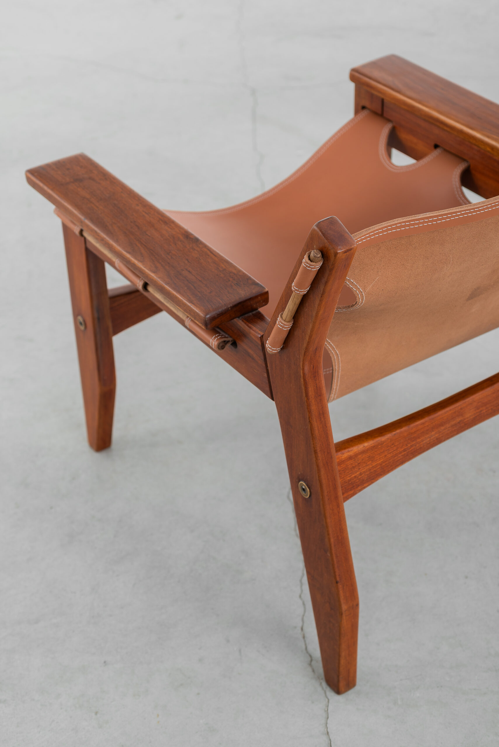 Poltrona Kilin em freijó maciço e couro.