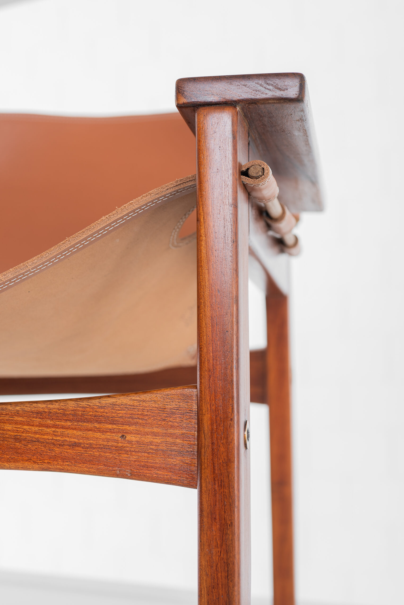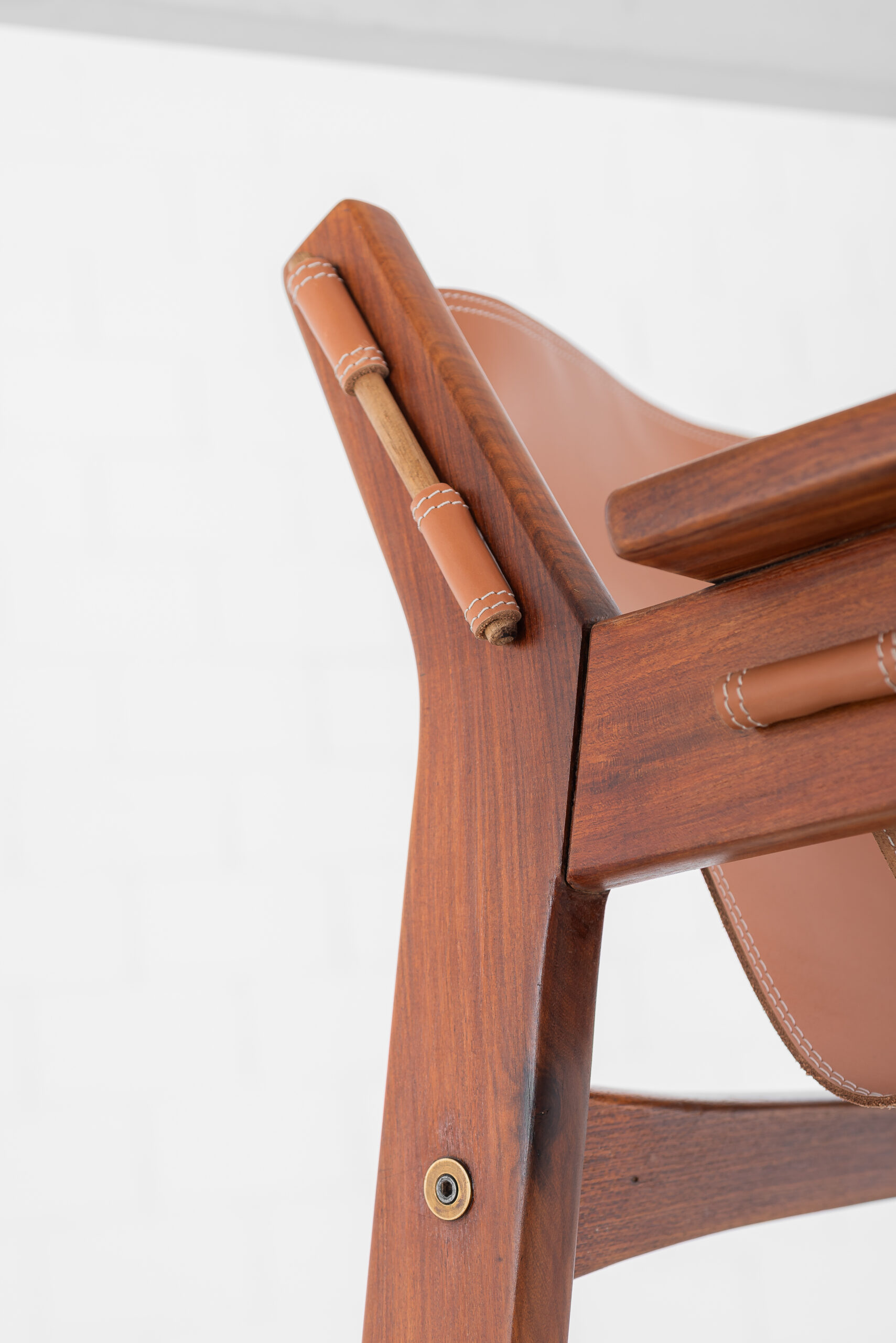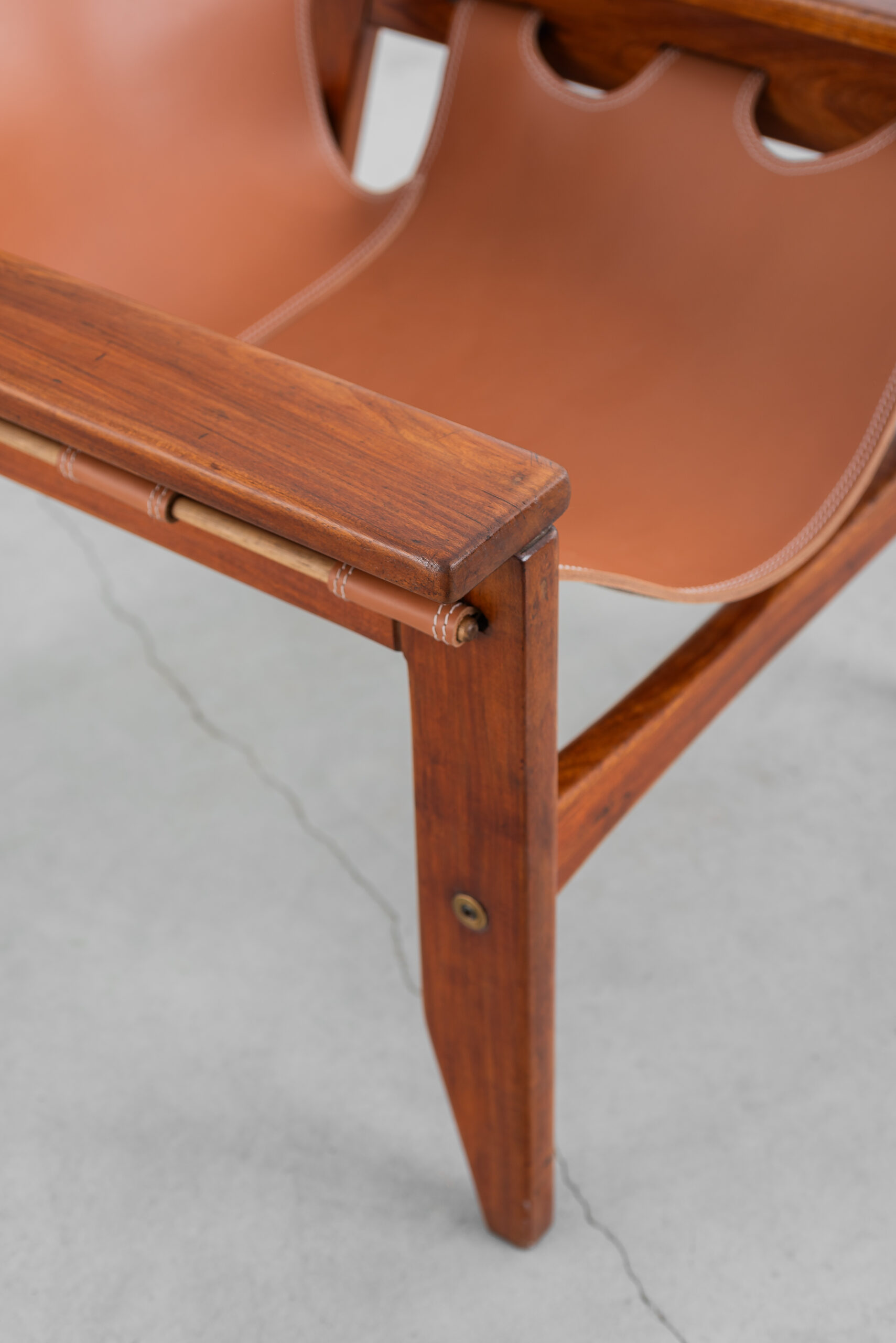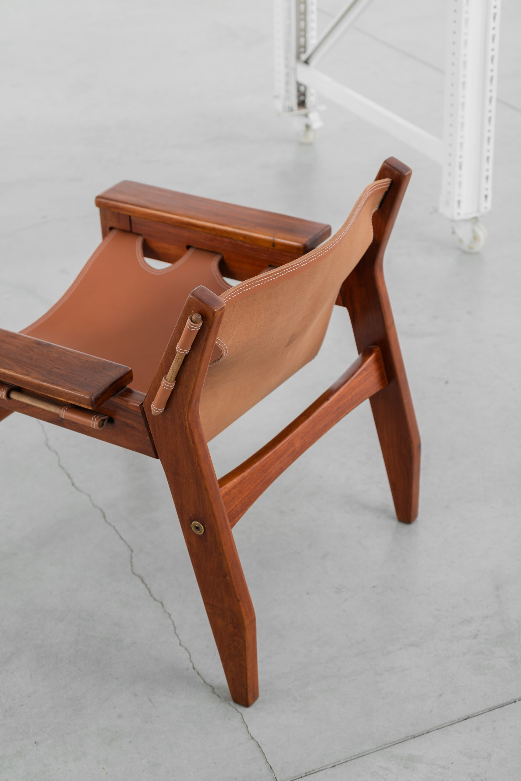 Poltrona Kilin em freijó maciço e couro.